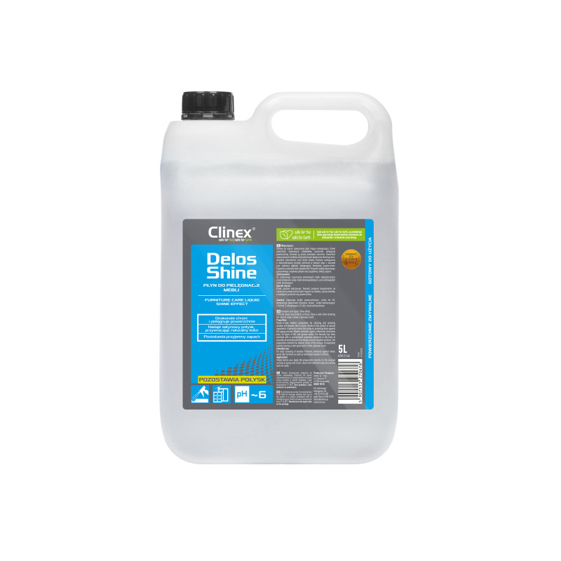 Clinex Delos Shine w pojemności 5L to profesjonalny preparat do pielęgnacji i nabłyszczania mebli. Idealny do dużych lokali, gdzie regularnie dba się o elegancki wygląd wnętrza. Zapewnia lśniący efekt, chroniąc powierzchnie przed kurzem i zabrudzeniami.