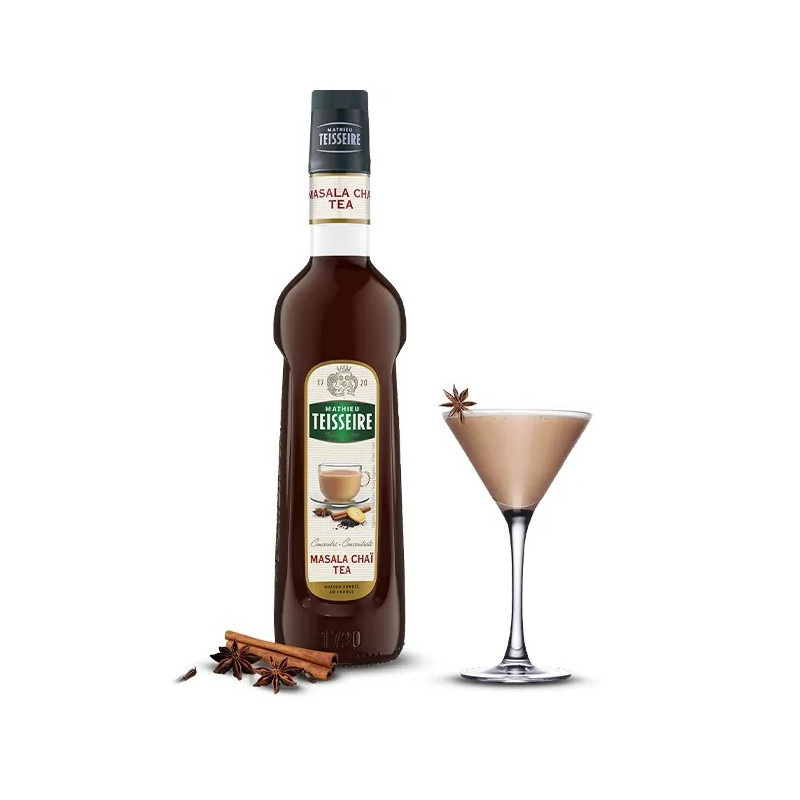 Syrop Mathieu Teisseire’s Masala Chai Tea wnosi pełny i ziemisty profil smakowy do gamy herbat korzennych. Zawiera nuty kardamonu, mielonych przypraw, goździków, cynamonu i czarnego pieprzu. To harmonijne połączenie słodyczy i ciepła, idealne do wzbogacania ciepłych napojów, takich jak kawa. Jego popularność rośnie, ponieważ dodaje egzotycznego charakteru klasycznym koktajlom i napojom bezalkoholowym, takim jak mrożone herbaty. Polecany do drinków!