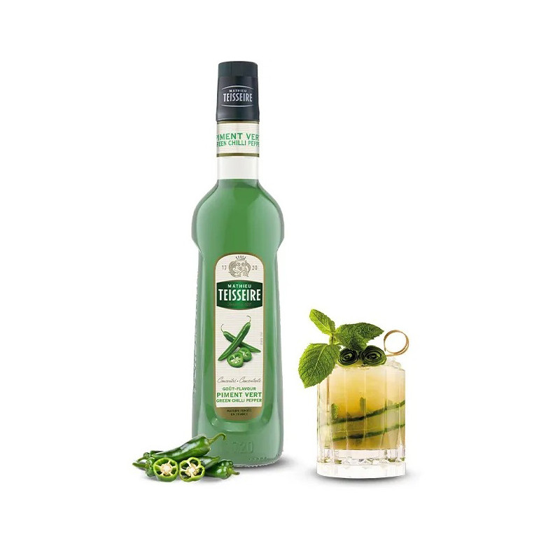 Syrop z zielonej papryczki chilli oferuje jasny i świeży profil smakowy w asortymencie o ostrym smaku, łącząc zarówno ostrość, jak i słodycz. Żywy i wyjątkowy profil może dodać odrobinę pikanterii do każdego klasycznego lub współczesnego koktajlu i ożywić popularne napoje bezalkoholowe, takie jak domowe napoje gazowane, mrożone herbaty, a nawet spritzy. Polecany do drinków!