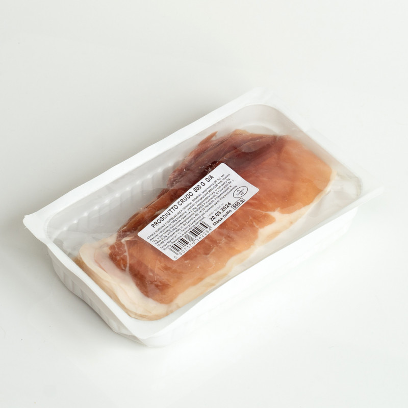 Prosciutto Crudo, Szynka surowa dojrzewająca, plastry, Włochy. Składniki: wieprzowina 96%, sól